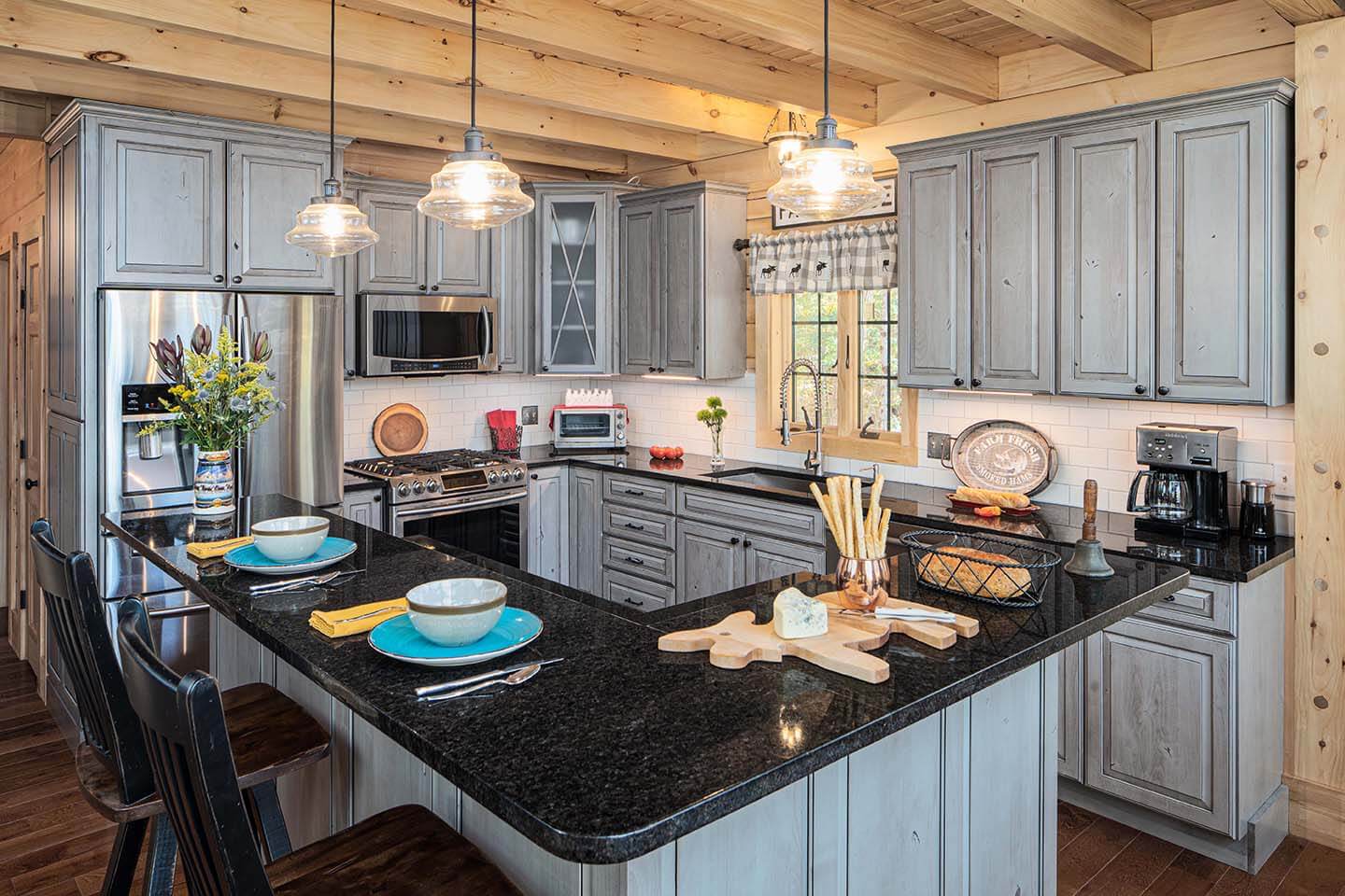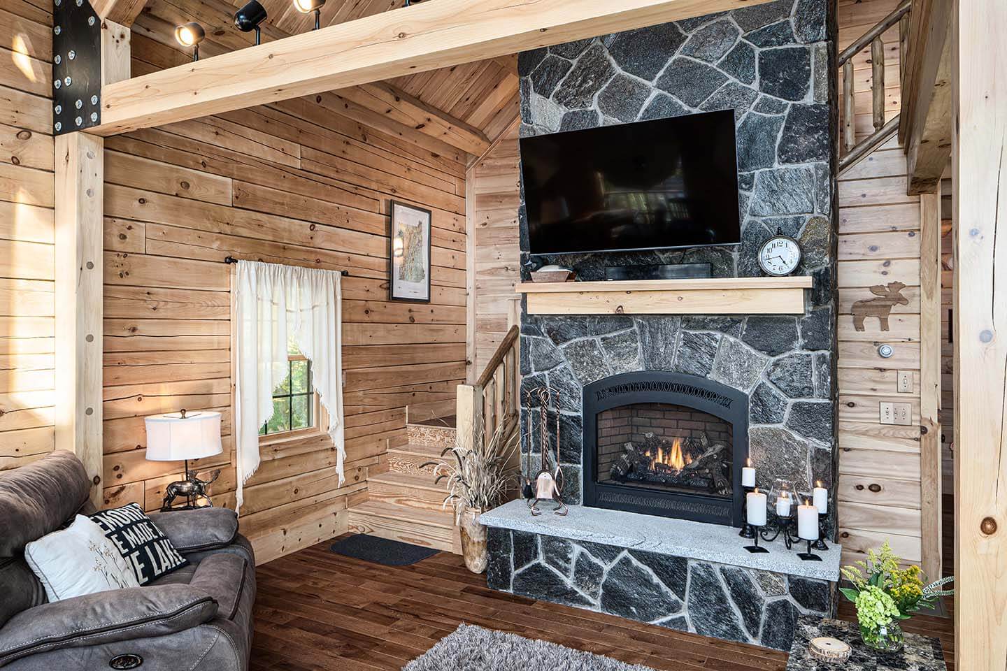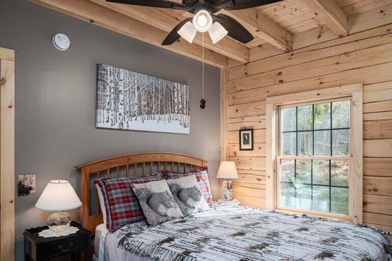 The Skyline is a charming craftsman constructed chalet style home offering our distinctively modern open concept design. Access an 10’ x 35’ open deck in front of the signature gable end featuring a wall of windows and a slider and let the ever-changing weather and lighting patterns become an intentional living mural. The two bedrooms with closets and a common bathroom between are at the rear of the home and could easily be converted for other uses with decor changes. The entire upstairs is dedicated to the master bedroom suite. The suite is made spacious and architecturally interesting with the addition of a dormer and cathedral ceiling.