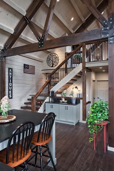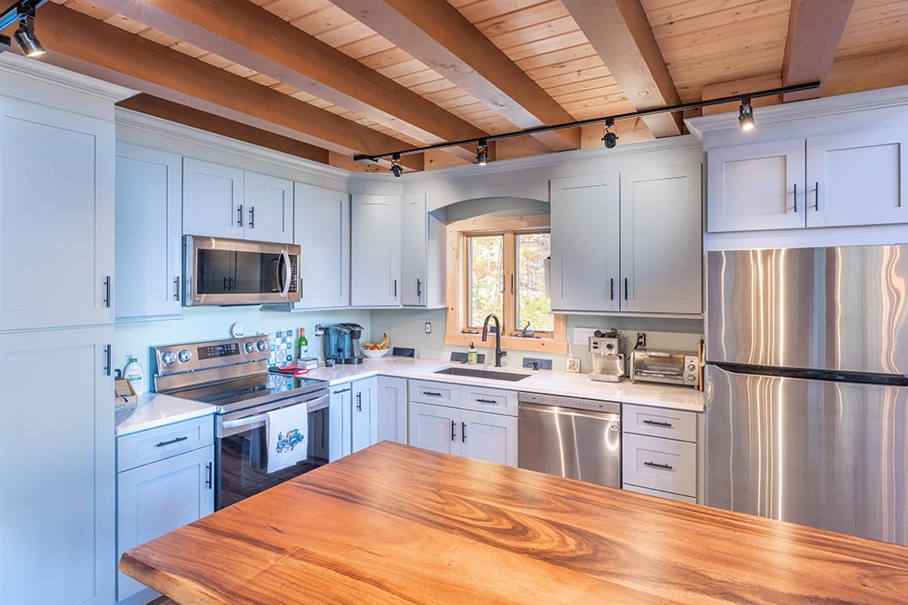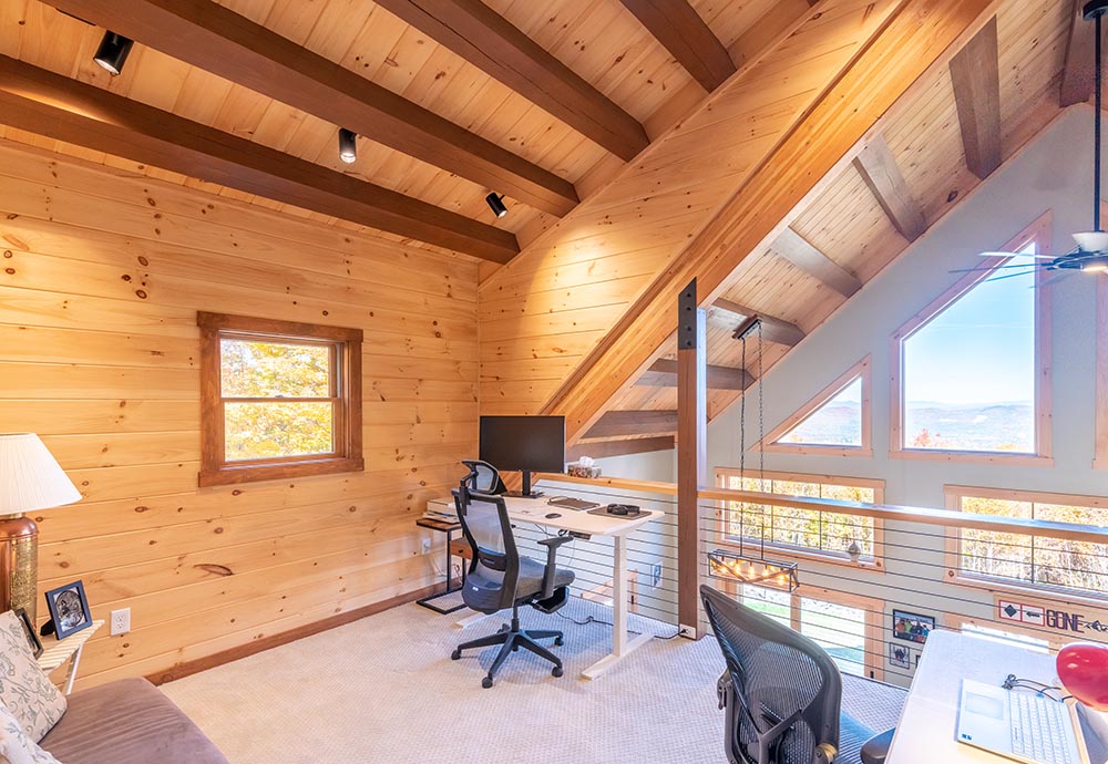 Our Adirondack style homes feature a rugged timber frame roof and loft system. The large exposed beams become a focal point of the home and creates the “cabin feel” that so many desire.