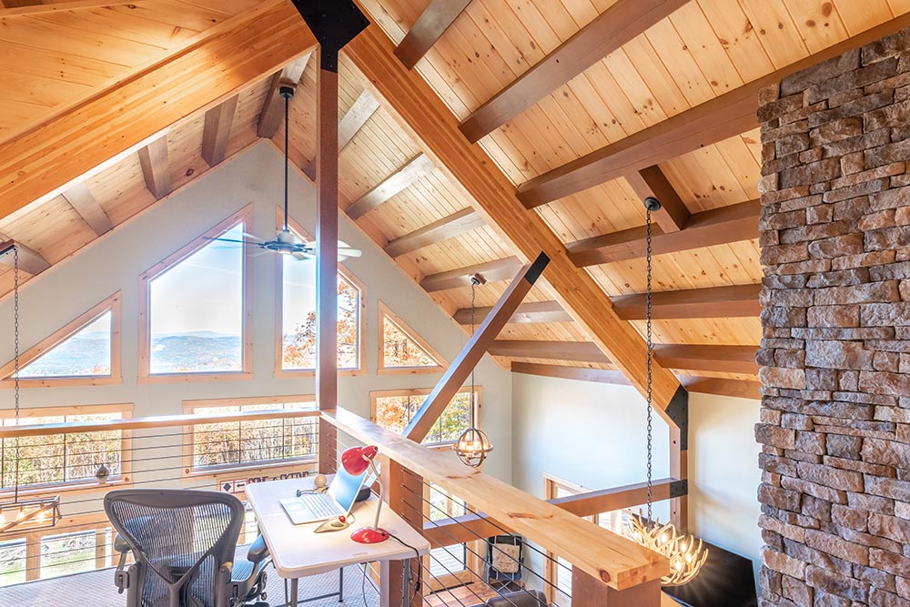 Heavy Timber Joists • Girder • 2x6 T&G Subfloor • Round Railings • Heavy Timber Stairs
