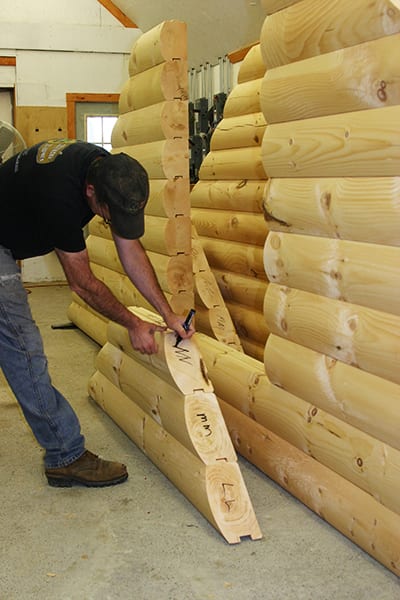 All the logs in our package are pre-cut, numbered, and lettered here at our factory exactly to your plan, including ALL the corners, ALL the window and door openings, and ALL the gable logs. This saves thousands of $$$ dollars for you on the construction side. Pre-cut logs go up faster on the job – meaning you will enjoy your new log home much sooner. Better quality construction – our specialty equipment is designed to make the cuts and notches exactly to the plan. Other companies send you uncut logs and expect you to do that on site and it can’t be done!