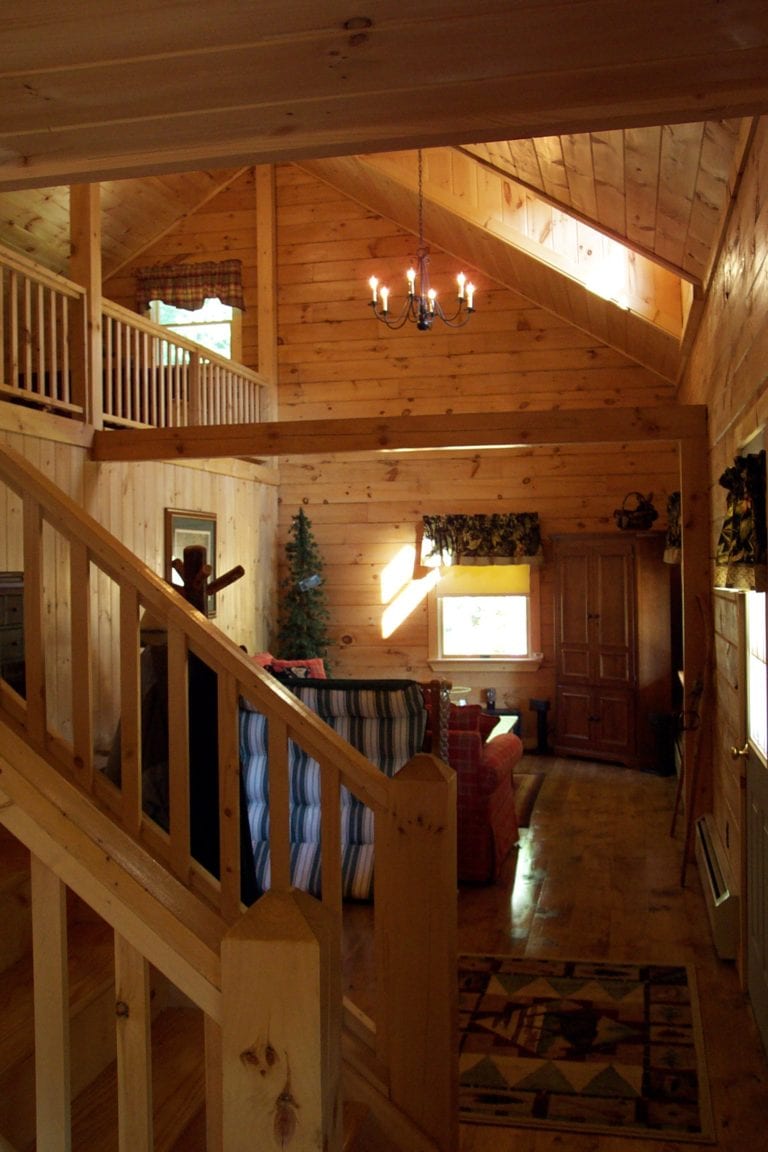 The Homestead is a spacious home with a master bedroom suite on the first floor, living area, open kitchen, and dining room. The second floor features 2 bedrooms a full bath and a loft.