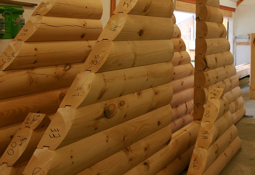 All the logs in our package are pre-cut, numbered, and lettered here at our factory exactly to your plan, including ALL the corners, ALL the window and door openings, and ALL the gable logs. This saves thousands of $$$ dollars for you on the construction side. Pre-cut logs go up faster on the job – meaning you will enjoy your new log home much sooner. Better quality construction – our specialty equipment is designed to make the cuts and notches exactly to the plan. Other companies send you uncut logs and expect you to do that on site and it can’t be done!