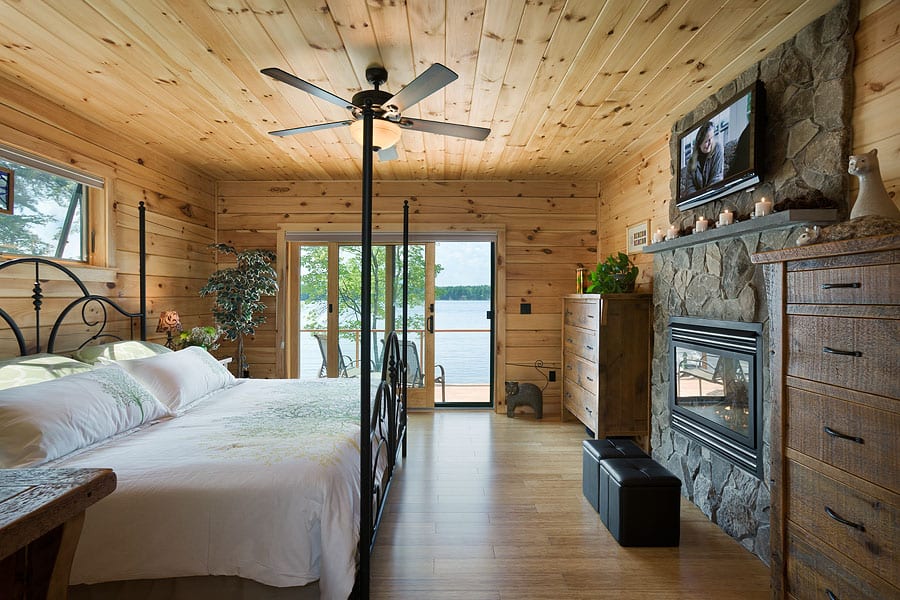 The Bay View was designed to let in an abundance of natural light and to take in lakefront views from every room. It was also important to ensure that the design would accommodate the homeowners now and well into their advancing years. This home accomplishes these design challenges with elegance. A gym over the attached 2-car garage is a must for the now and the master suite on the ground floor is not only good for now but later when their health might necessitate it. The guest rooms are located upstairs and this loft area creates a 2-story wall of windows for allowing the light and views that were so important in their design goals.